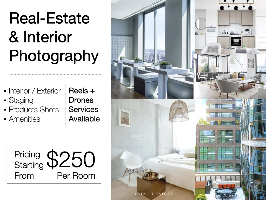 ILIN DESIGNS® offers professionally tailored floorplan layouts, project coordination services, interior staging, mood-board consultation, full-service furniture assembly, high-end art hanging, custom floating shelves, and TV mounting services, as well as interior photography services for commercial, residential & hospitality clients.
